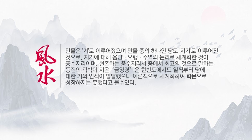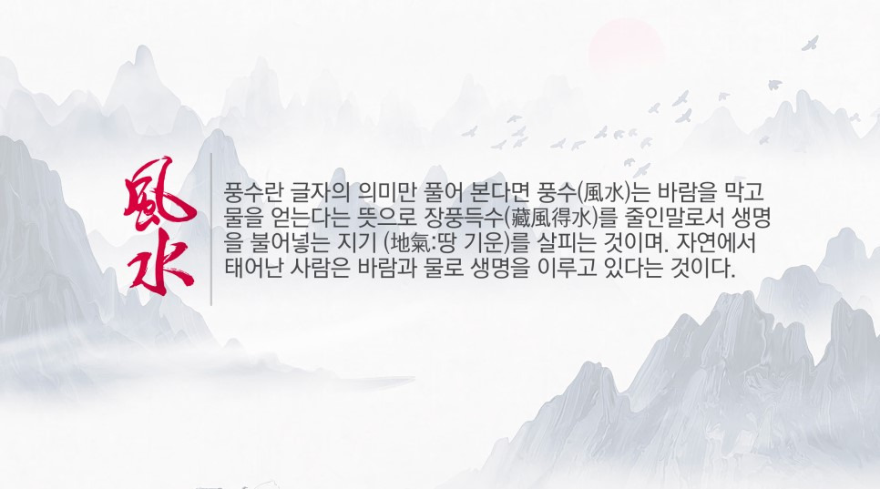 풍수는 하늘과 땅의 자연현상을 합리적으로 이해하여 인간의 발전과 행복을 추구하는 학문이다.