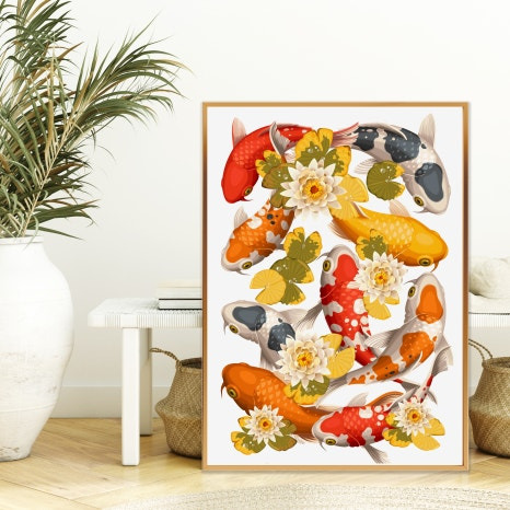 ▶사주에 좋은 풍수그림 : 황금왕죽도, 노란색이 많이 들어간 그림 <풍경, 꽃, 잉어>
